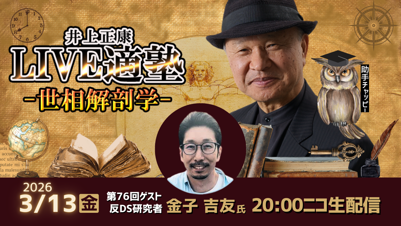 井上正康に代わりピンチピッターとして、情報戦略アナリストの山岡鉄秀さんがホスト役を務めます!大人気YouTube 番組「世界史解体新書」の土井昭先生が登場。「高市ポピュリズム現象と日本の行く末」【YouTube】【ニコ生】